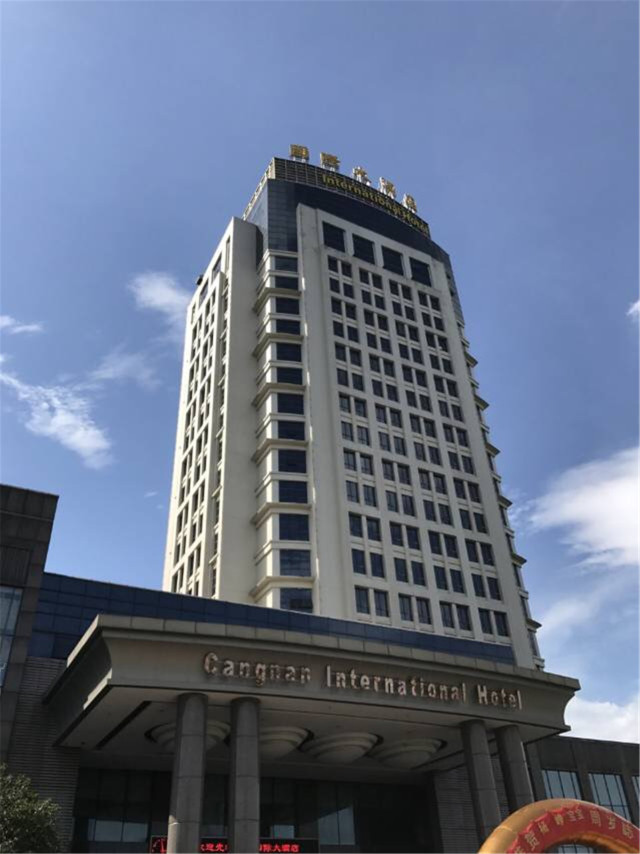 苍南国际大酒店位于人民大道,距涌台温高速约1.5公里,距苍南银泰商城约0.3公里(美食中心),距沃尔玛超市约0.3公里,距中心湖公园(音乐喷泉)约0.2公里,附近有名胜旅游景点:玉苍山森林公园、鱼寮大沙滩、碗窑古村落、莒溪大峡谷、石聚堂、日月谭农庄、蒲壮所城、炎亭大沙滩、五凤茶园、矴步头、韭菜园、福德湾(世界矾都)。苍南国际大酒店主楼高20层88米,建筑面积3.6万平方米,拥有各类豪华套房百余间,风格迥异的中西餐厅5个(琴韵大堂吧、维也纳咖啡厅、鸿运厅、豪景中餐厅、云顶行政会所),豪华包厢31个,可提供1800人同时就餐并拥有大型宴会厅和多功能厅;酒店还设有桑拿足浴休闲娱乐场所。